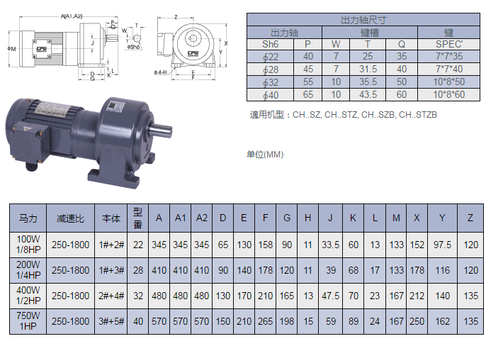 CH..SZ(CH..SZB) 臥式高速比附三相缩框铝壳(剎车)马达减速机