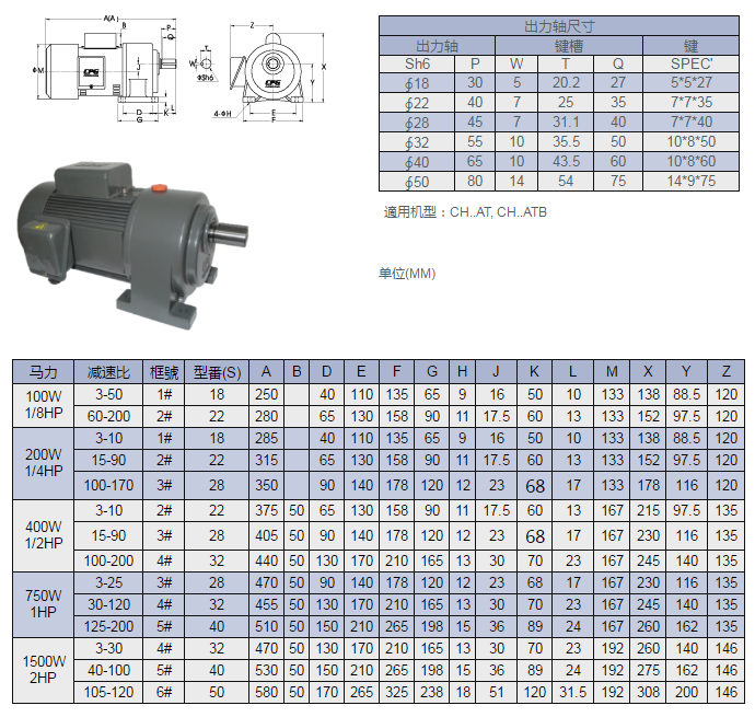 CH..A 臥式附单相铝壳/半密铁壳(剎车)马达减速机