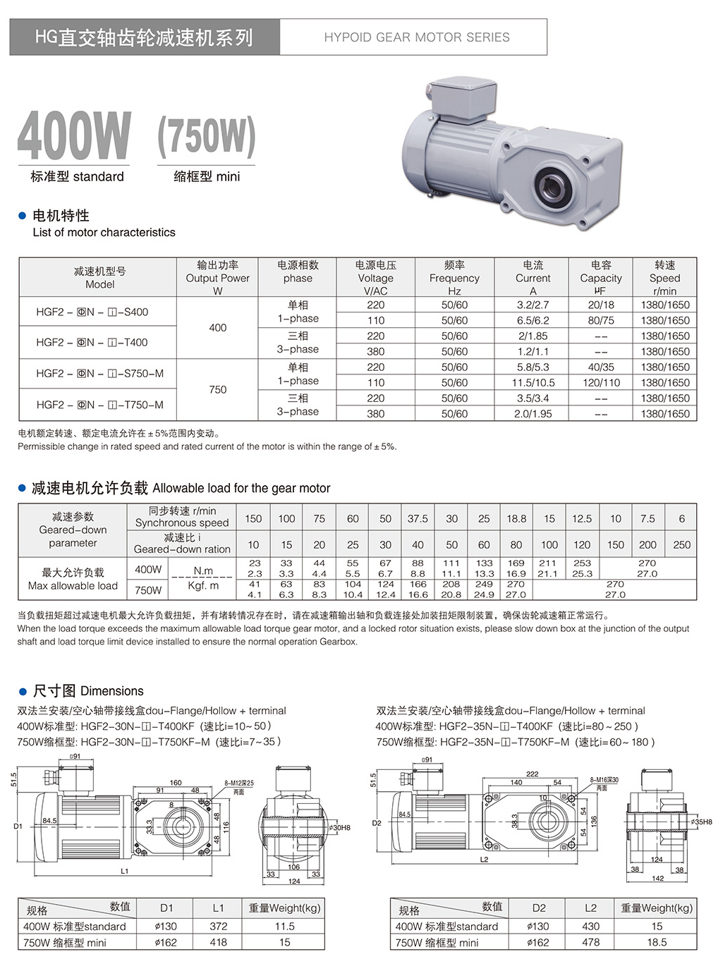 标淮单相减速机型